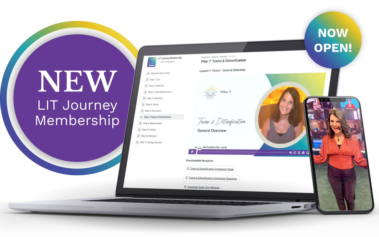 The LIT Journey Online Course is a comprehensive program designed by Dr. Lisa Koche. It offers 24/7 access to over 20 years of her clinical wisdom, covering 11 pillars of health through video lessons, live coaching calls, a private community, and practical guides. It's aimed at anyone seeking to enhance their health, whether dealing with chronic issues or aspiring for peak performance.